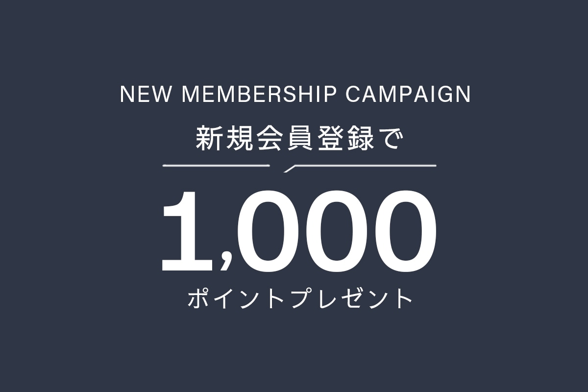 3月6日(金)16:00より、新規会員登録をしていただいたお客様全員に、1,000ポイントをプレゼントいたします。 また、ご登録時にメールマガジンの配信にご同意いただいた方には、入荷情報や会員限定セール、割引クーポンなど、お得な最新情報をメールにてお届けいたします。この機会にぜひご登録ください。