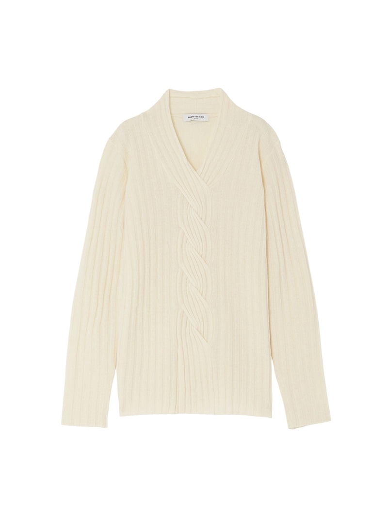 ヤクとウールのワイドリブニット。肌当たりが柔らかく、しっかりとしなやかな風合いが特徴です。
