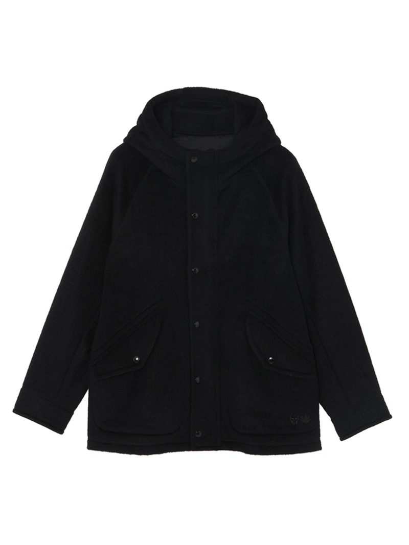 ユニセックス アルパカ ウールボア フードハーフジャケット スカル